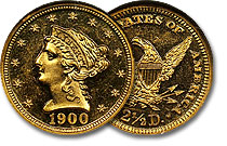 Wow! 1900 $2.50 NGC PF64 CAMEO Gold Liberty Quarter Eagle is gorgeous! Frosted, sharply struck design elements are bold and floating in well glassed fields. Lustrous and crisp in appearance, nicely defined contrast...what more could you ask for in a CAMEO... |