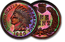 | 1900 1c NGC PF65RB Neon Rainbow Toned Proof Indian Cent |