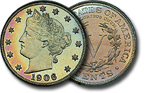 | 1906 5c PCGS PR65CAM Toned Proof Liberty Nickel |