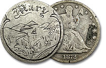 | 1872 50c Seated Half Love Token Sailboat Pictorial – Mary |