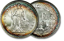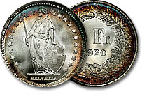 | 1920 1F NGC MS66 Beautifully Toned Premium Swiss Franc |
