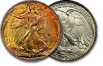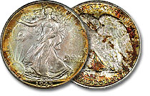| 1943-S 50c PCGS MS65 Translucent Rainbow Toned Walker |