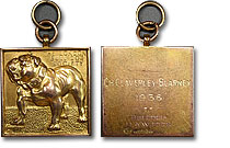 This is a gold medal (hollow) presented in 1936 by the London Bulldog Society Ch. Claverly Blarney to breeder H.A. Wiffen.