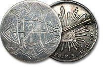 This fabulous and rare authentic Mexico 1878 8 Reales Love Token is amazingly engraved with the initials MNE and has pinback hardware that is still in full functioning condition. What a beautiful love token with outstanding eye appeal and coolness factor.... |