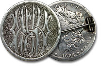 This fabulous Morgan Dollar Love Token features the initials RHH elegantly engraved on the moneyside over a boldly textured field. The reverse has pinback hardware attatched and is still in wonderful working condition. ... |