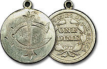 This cute love token is engraved with the initials IC on a silver US Dime and is affixed with a loop for use on a necklace or bracelet. ... |