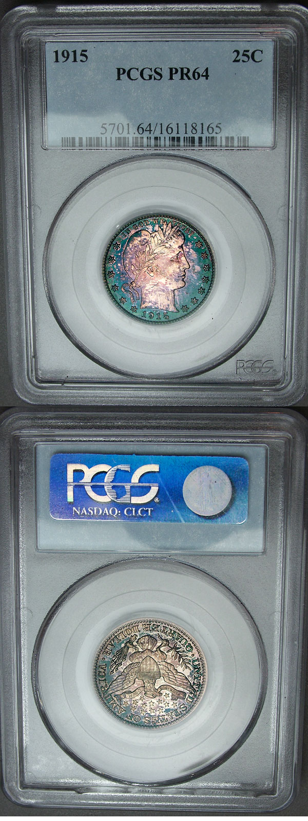 1915 25c PCGS PR64 Deeply Toned PQ Barber Qtr. (CAM???)