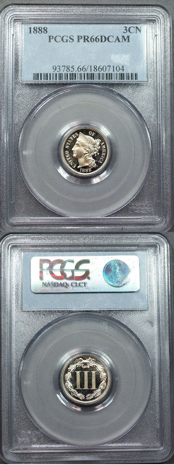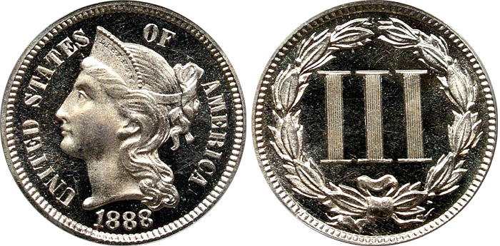 1888 3cn PCGS PR66DCAM Black and White Proof Three Cent Nickel