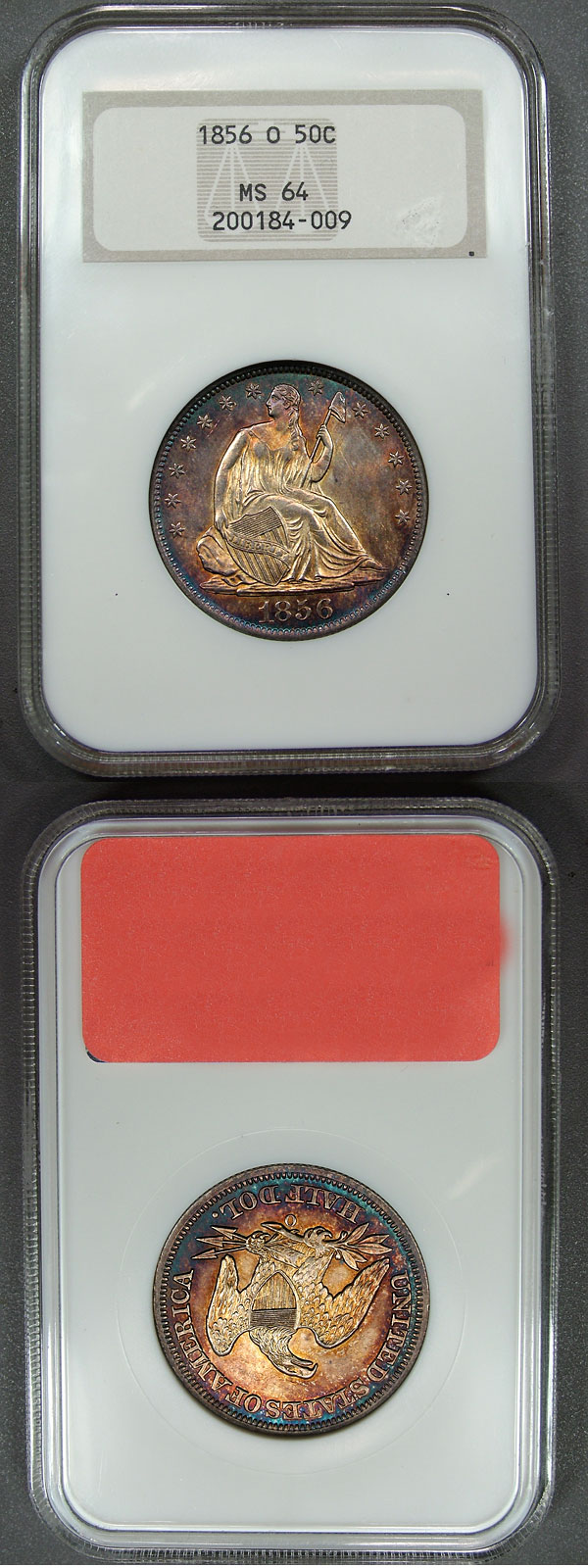 1856-O 50c NGC MS64 Stunning Original Toned Seated Half