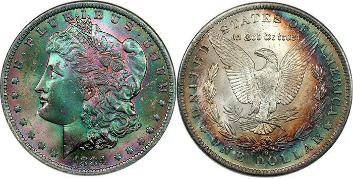 View the largest gallery of high-end and Monster rainbow toned Morgan dollars, an informational guide on how to tell natural vs. artificial toning, learn to price toned Morgans, view auction results of rainbow Morgans, and view what characteristics to look for in high-end toned rainbow Morgan dollars.