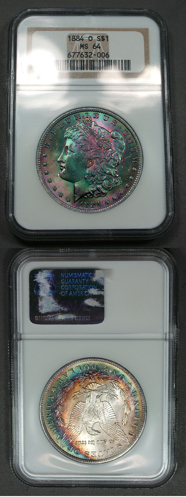 1884-O $1 NGC MS64 Deep Rainbow Toned Morgan Dollar