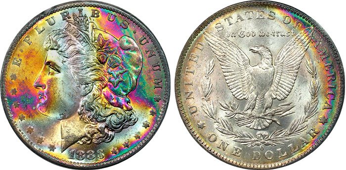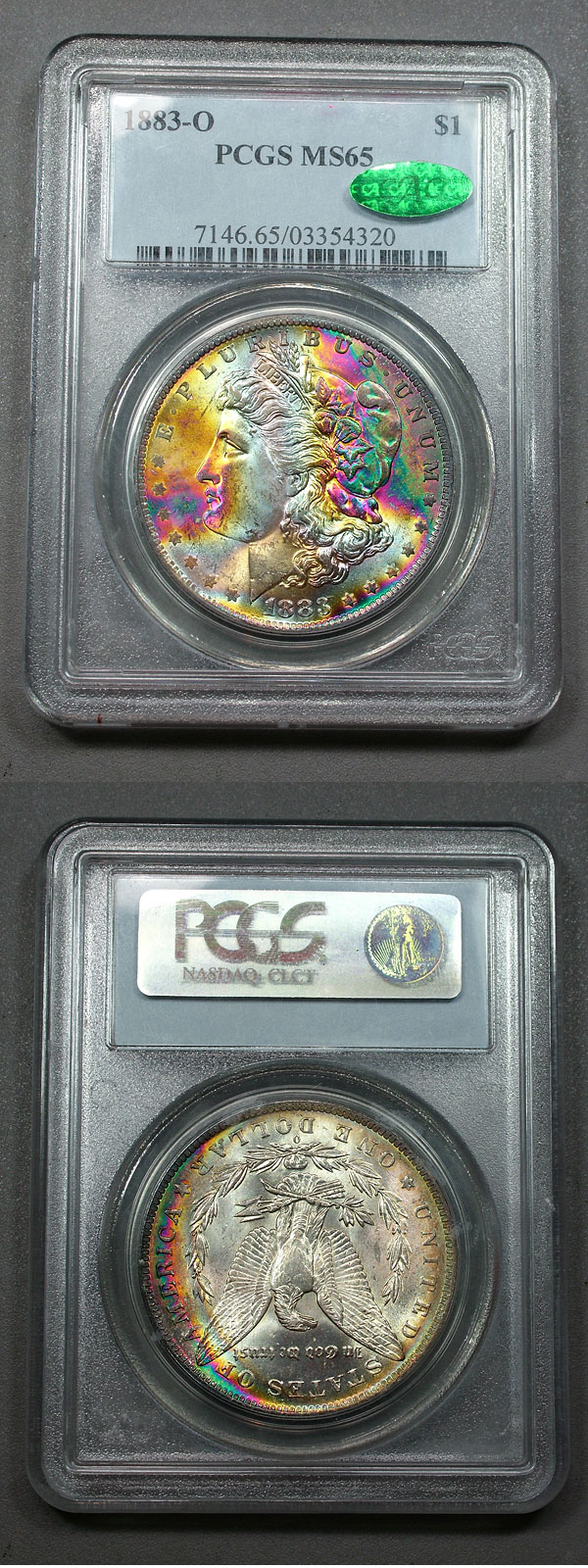 1883-O $1 PCGS MS65 CAC Monster Toned Rainbow Morgan - Southern Cross