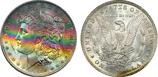 rainbow Morgan dollars.