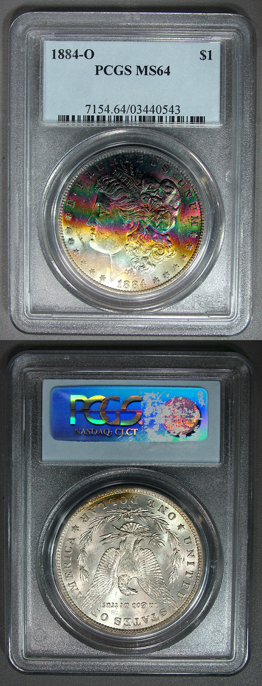 1884-O PCGS MS64 Banded Rainbow Toned Morgan