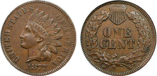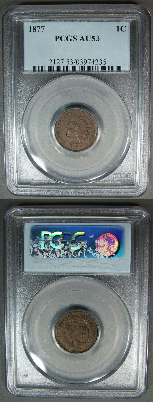 1877 1c PCGS AU53 Smooth and Clean Indian Cent