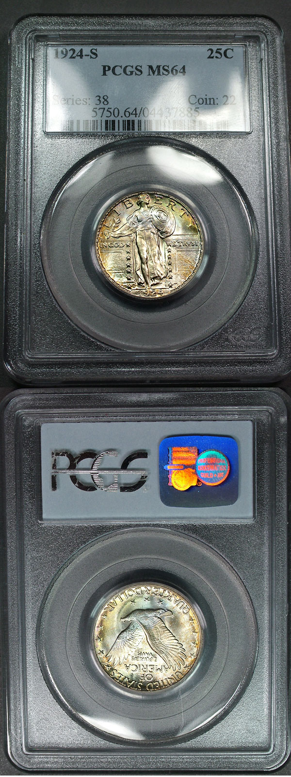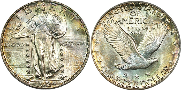 1924-S 25c PCGS MS64 Lustrous Rainbow Standing Liberty Quarter