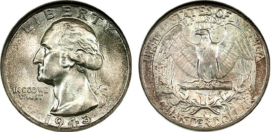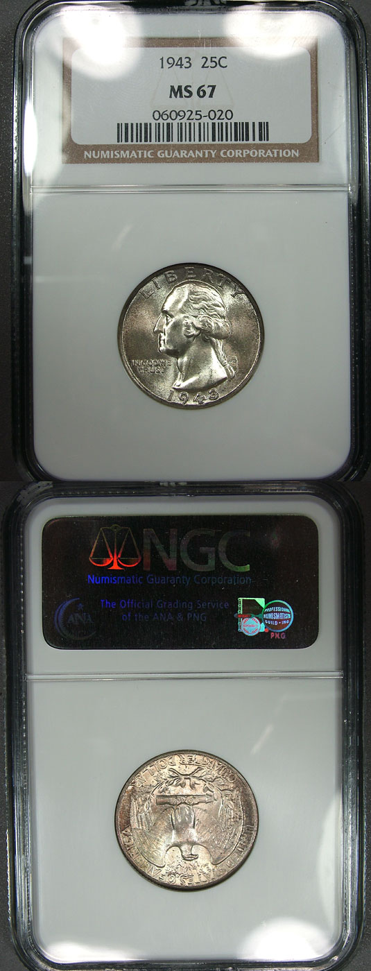 1943 25c NGC MS67 Original Lustrous Washington Quarter