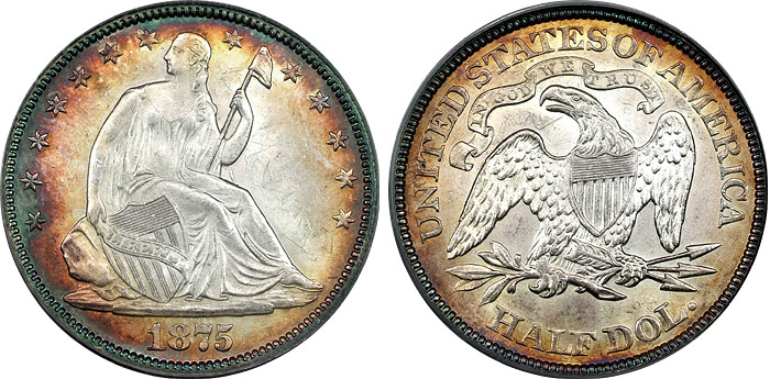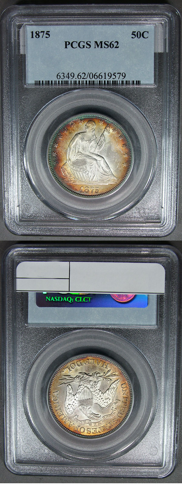 1875 50c PCGS MS62 Impressively Toned Seated Half - PQ