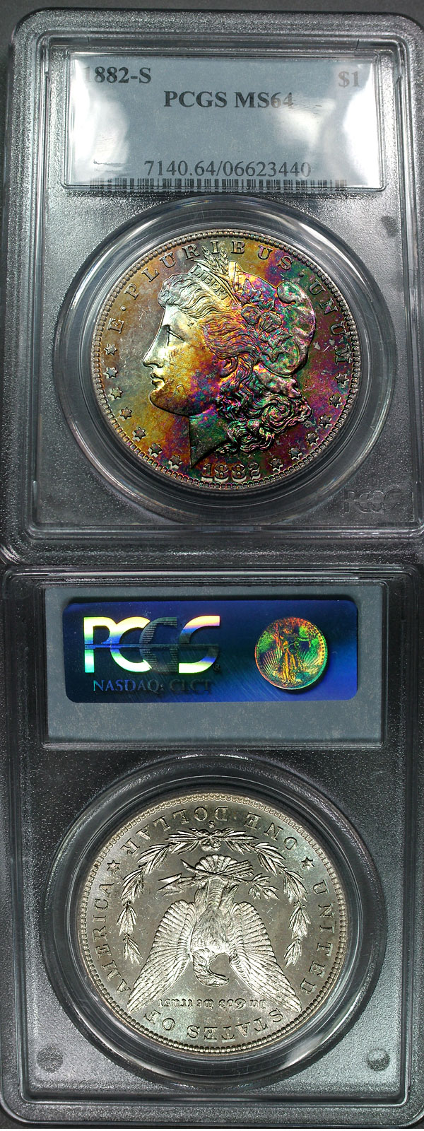 1882-S $1 PCGS MS64 PL Textile Neon Rainbow Morgan
