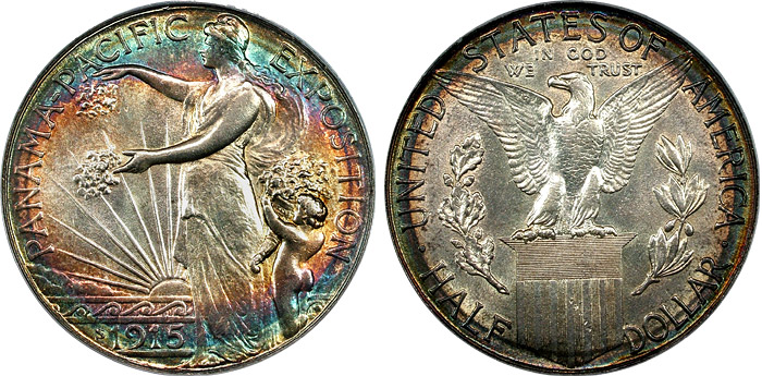1915-S 50c PCGS MS64 Fabulously Toned Pan-Pac Commem