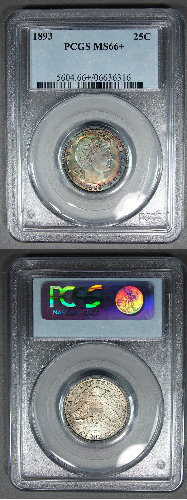 1893 25c PCGS MS66+ Monster Barber Finest Known Pop, 1/0