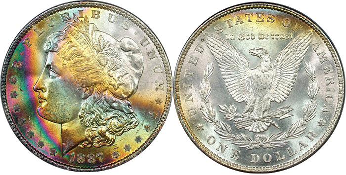 View the largest gallery of high-end and Monster rainbow toned Morgan dollars, an informational guide on how to tell natural vs. artificial toning, learn to price toned Morgans, view auction results of rainbow Morgans, and view what characteristics to look for in high-end toned rainbow Morgan dollars.