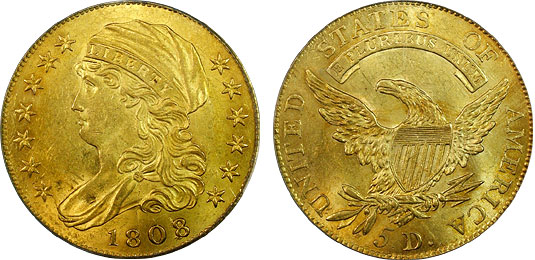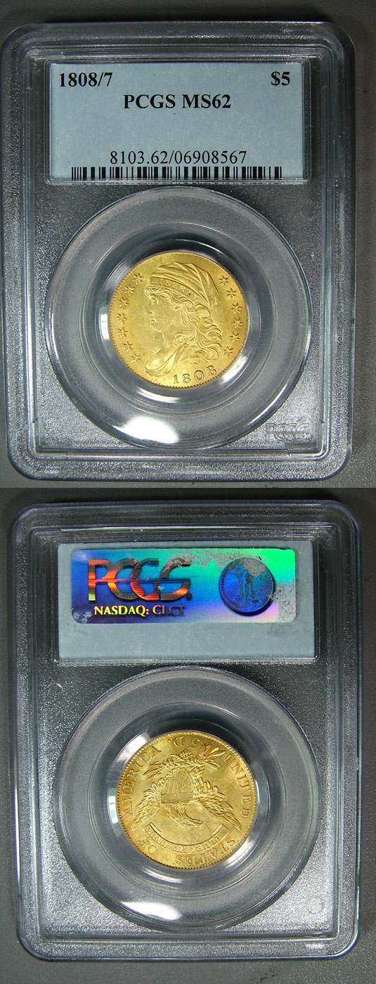 1808/7 $5 PCGS MS62 Capped Bust Gold Half Eagle