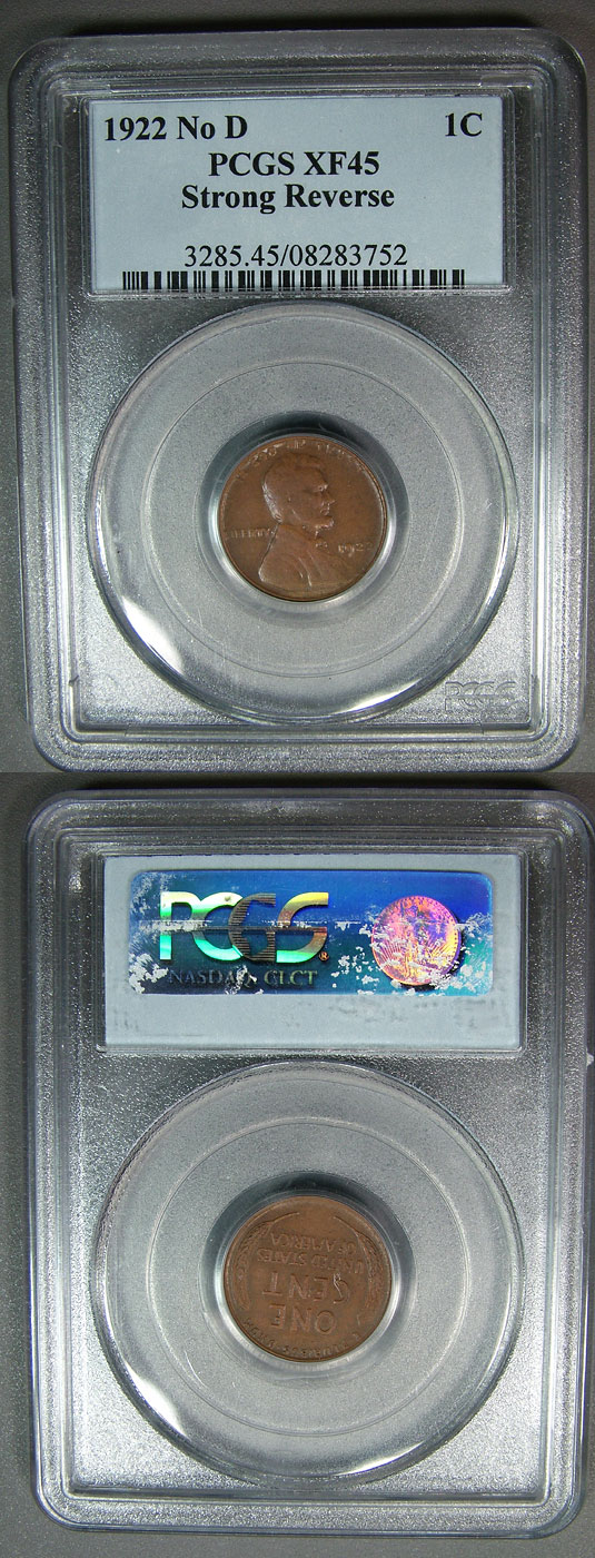 1922 No D 1c PCGS XF45 Smooth Lincoln Cent