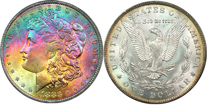 rainbow Morgan dollars.