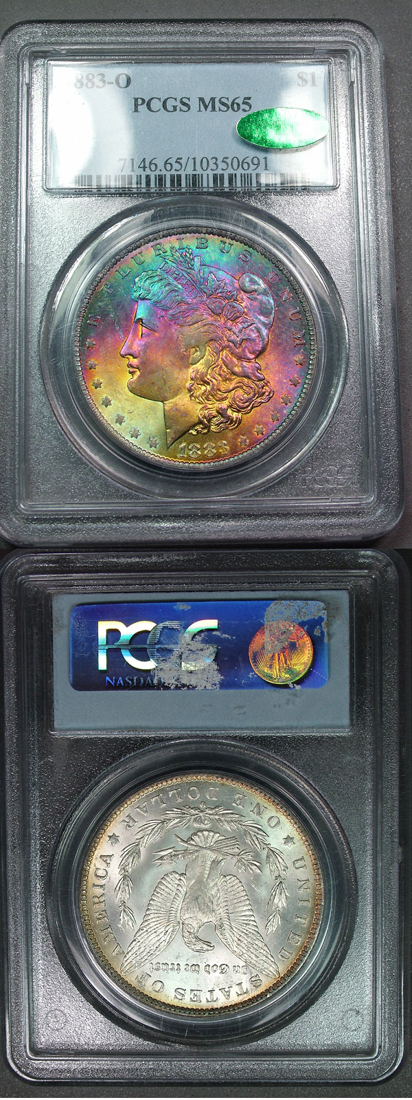 1883-O $1 PCGS MS65 CAC Neon Rainbow Toned Morgan - Passion