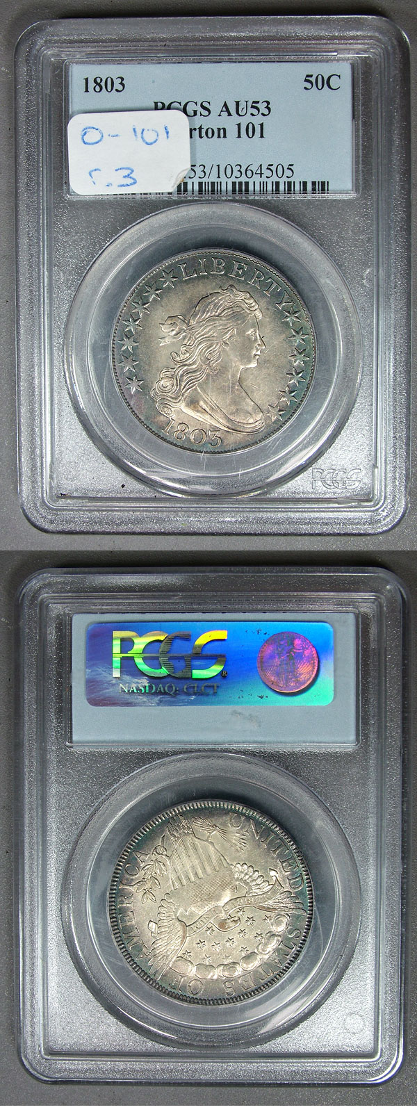 1803 50c PCGS AU53 O-101 Stunning Toned Draped Bust Half