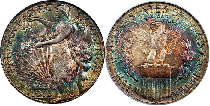 1915-S 50c PCGS MS64 Beautifully Toned Pan Pac Commem