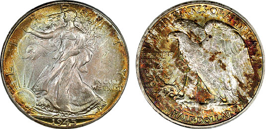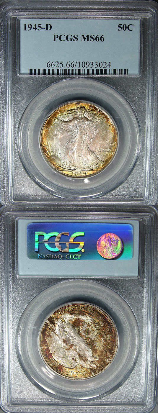 1945-D 50c PCGS MS66 Target Toned Walking Liberty Half