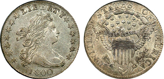 Awesome 1800 Draped Bust Dime sharply struck and superb in every way! Devices are frosted, lustrous and surfaces well preserved. This coin is absolutely gorgeous.JR-1, R.4. On this variety, the obverse shows a die dot over curl #1, another between the 1 and the 8 in the date, and the reverse displays star 12 touching the motto ribbon, but not the eagle''s beak. The deliveries of dimes in 1800 were made in two deliveries; 16,760 pieces on March 25, and 5,000 coins on March 26.