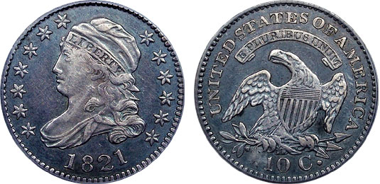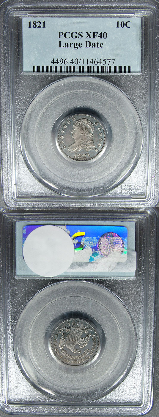 1821 10c PCGS XF40 Toned Capped Bust Dime - Large Date