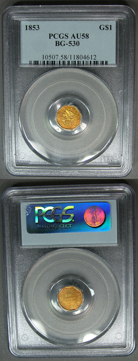 1853 $1 PCGS AU58 Territorial Gold Fractional BG-530