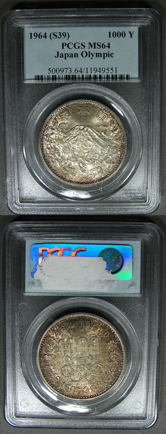 1964 1000Y PCGS MS64 Toned Silver Japan Olympic