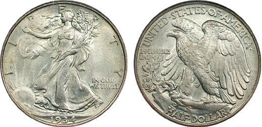 1934 50c PCGS MS64 Frosty Near Gem Walking Liberty Half