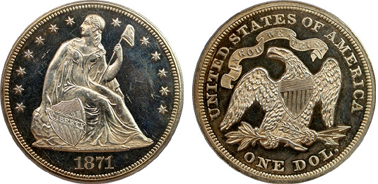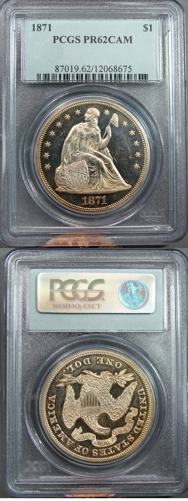 1871 $1 PCGS PR62CAM Proof Cameo Seated Dollar
