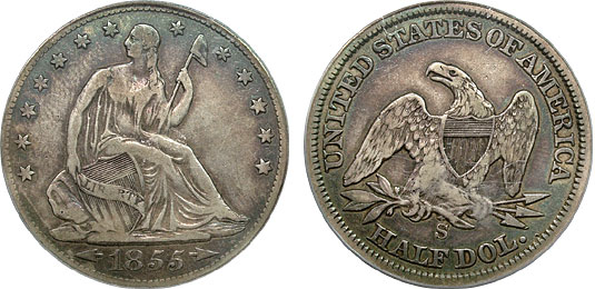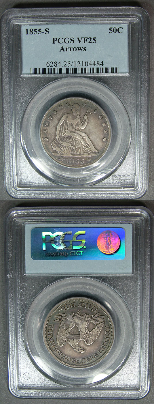 1855-S 50c PCGS VF25 Seated Half w/ Arrows