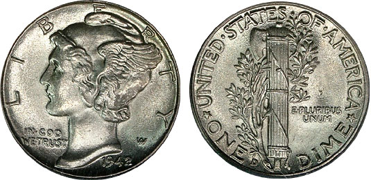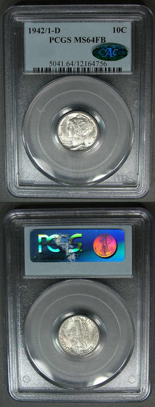 1942/1-D 10c PCGS MS64 Full Bands Mercury Dime