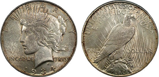 1934-D $1 PCGS MS62 Peace Silver Dollar