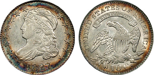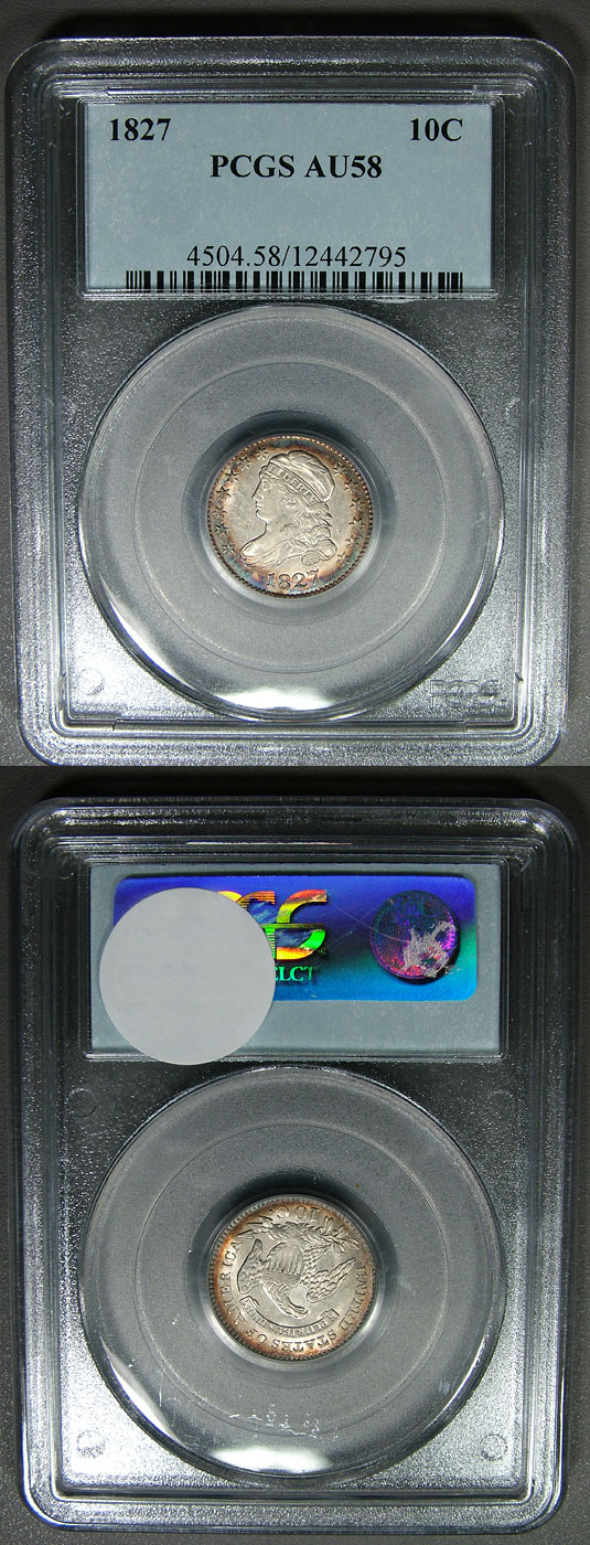 1827 10c PCGS AU58 Toned Capped Bust Dime