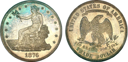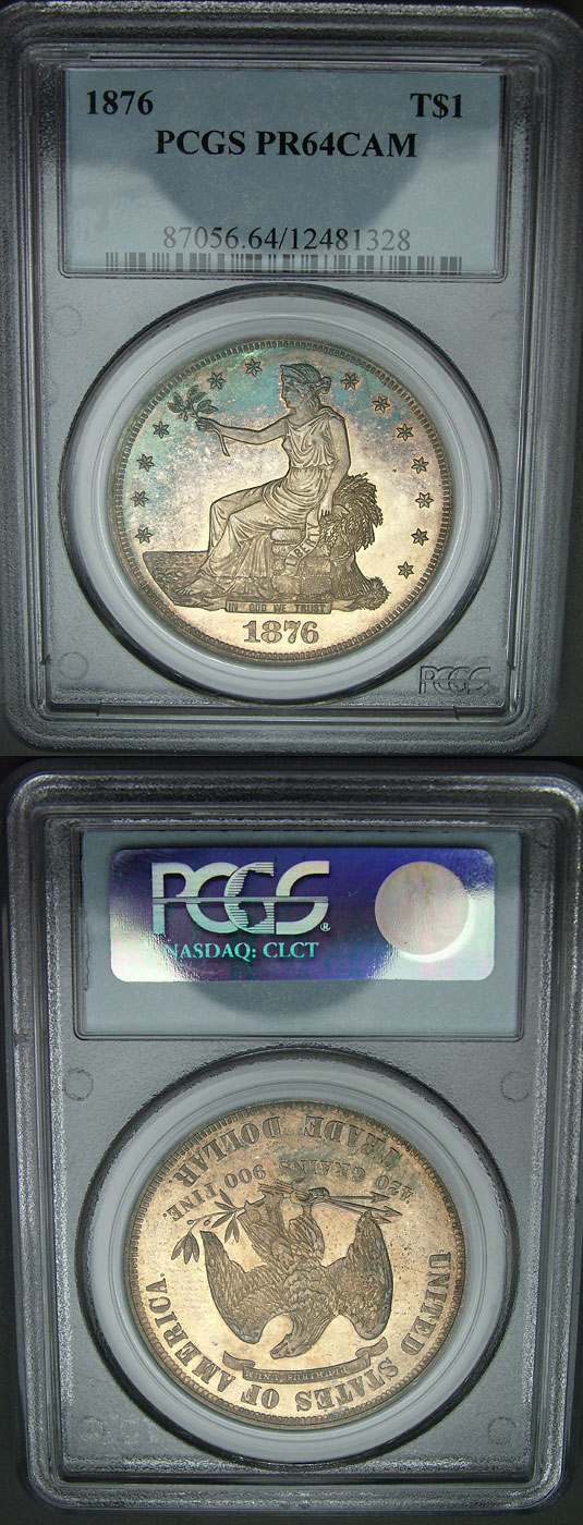 1876 $1 PCGS PR64 CAMEO Turquoise Toned Proof Trade