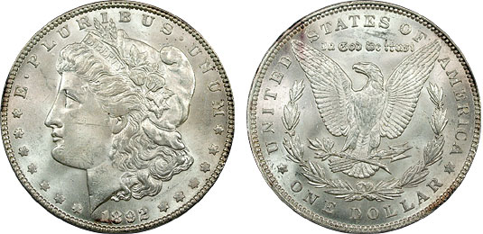 1892 $1 PCGS MS64 Morgan Silver Dollar