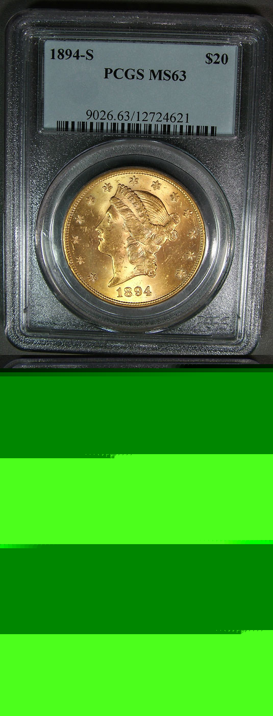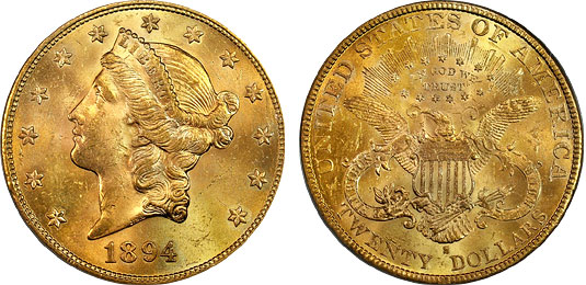 1894-S $20 PCGS MS63 Lustrous Gold Liberty Double Eagle