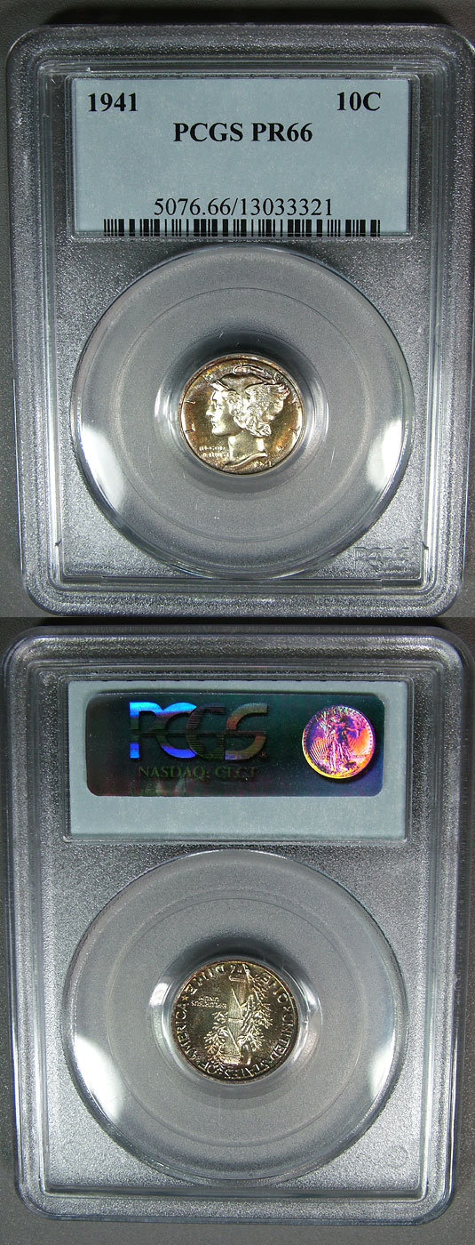1941 10c PCGS PR66 Toned Proof Mercury Dime