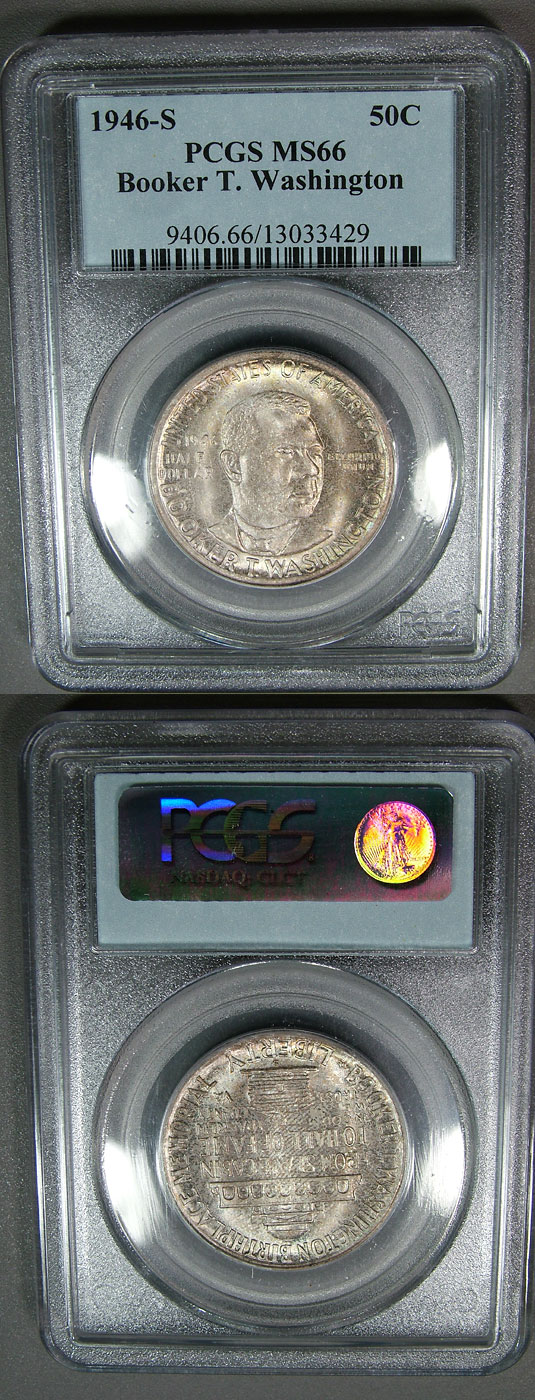 1946-S 50c PCGS MS66 Lightly Toned Booker T. Washington