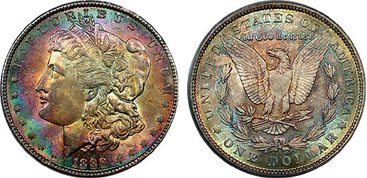 View the largest gallery of high-end and Monster rainbow toned Morgan dollars, an informational guide on how to tell natural vs. artificial toning, learn to price toned Morgans, view auction results of rainbow Morgans, and view what characteristics to look for in high-end toned rainbow Morgan dollars.