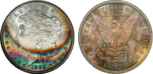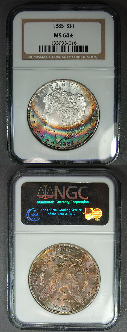1885 $1 NGC MS64* Vibrant Rainbow Toned Morgan Dollar